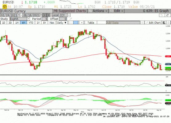 26 Ağustos işlem gününde satıcılı bir seyir izleyen Euro/Dolar paritesi üzerindeki baskı devam ediyor. Günü 0.16% düşüş ile 1.1751 seviyelerinden tamamladı. Bununla beraber 21 günlük üssel hareketli ortalaması önemli bir direnç olmaya devam ediyor.Yine bu noktalardan tepki satımları yaşandı.