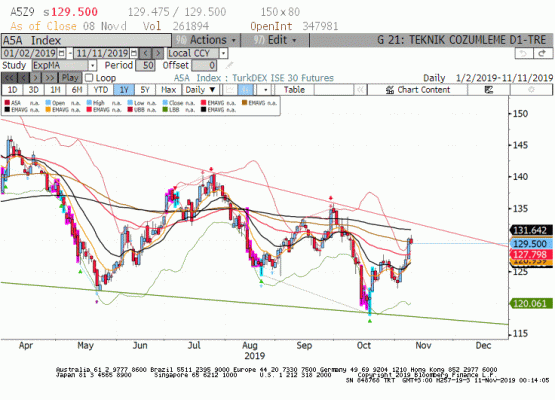 Teknik açıdan 50 günlük üssel ortalamanın da geçtiği 128.000 seviyesine gelebilecek düzeltme hareketinde önemli destek olarak izlenmelidir. Gün içinde 130.825 ve 200 günlük üssel ortalama 131.650 ise kuvvetli dirençler olarak izlenmelidir.