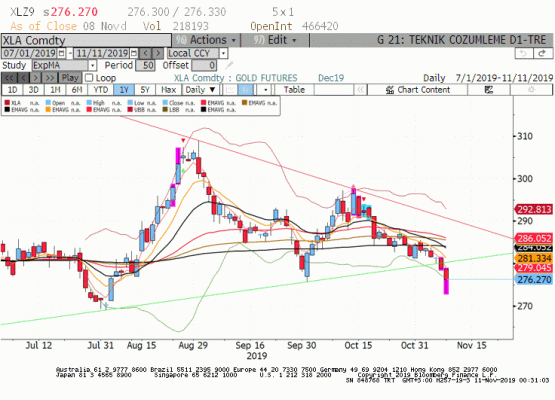 Güven liman talebinin zayıflamasına bağlı olarak Altın ons'da görülen düşüş Gram Altın'da aşağı yönde bir trend oluşturdu. Altın ons için 1437 usd desteğine kadar bir düşüş alanı olabilir ve TL tarafında da değer kaybı beklemiyoruz. Bu bağlamda gram altında da bir süre daha düşüş trendi devam edebilir. Ancak cuma günü itibariyle gün içi grafiklerde aşırı satım bölgesinden çıkış hareketi belirginleşti. Buna bağlı olarak bugün tepkisel alımlar görebileceğimizi düşünüyoruz.
