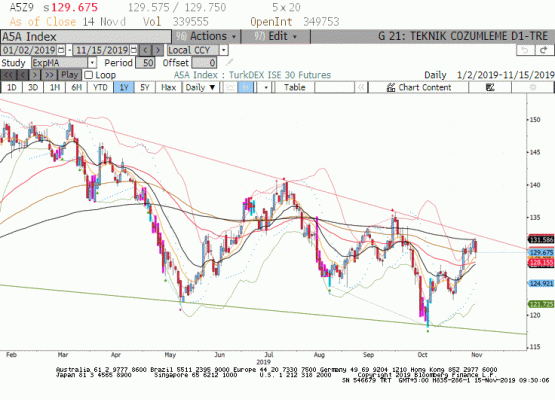 Son iki işlem gününde teknik olarak 200 günlük üssel ortalama 131.600 kuvvetli ve kritik bir direnç olduğunu teyit etti. Bugün de 131.600-132.250 seviyelerinin kuvvetli direnç bölgesi olmasını bekliyoruz. Düşüşün devamı halinde ise gün içinde 50 günlük ortalamanın geçtiği 128.150 seviyesi kuvvetli ve kritik bir destek olarak izlenmelidir.