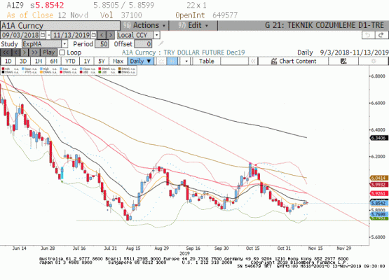 Aralık vade Dolar dün 5.8279 seviyesinde yatay kapanış yaptı.