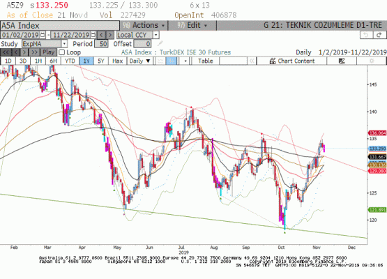 Aralık vade endeks dün günü 133.250 seviyesinde yatay tamamlarken dün akşam MSCI Türkiye ETF 0.33% değişim ile sınırlı değer kazancı sağladı.