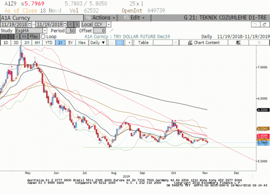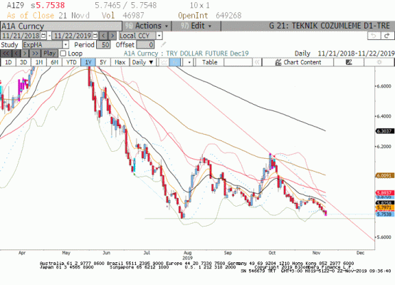 Yükselişlerin tepkisel kalmasını ve aşağı yönlü trendin korunmasını bekliyoruz. Trend takibinde trailing(iz süren) stop olarak kullandığımız 18 günlük üssel ortalamanın bugün geçtiği seviye 5.8258 altında devam eden fiyatlamalarda trend aşağı yönlü gelişmektedir ve yukarı yönlü hareketler uygun stop loss marjları ile satış için değerlendirilebilir. Bununla birlikte aşağıda 5.72 seviyesinin alıcıların gelebileceği kuvvetli bir ara destek olduğuna dikkat edilmelidir.