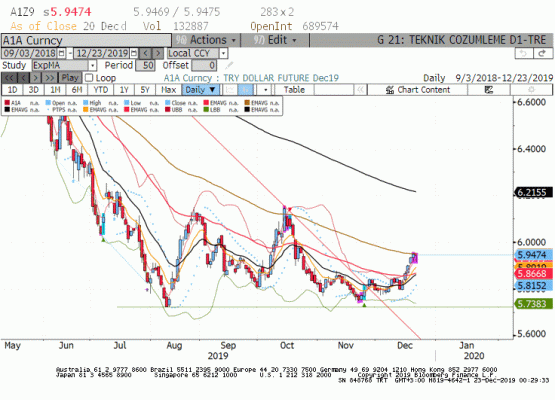 Aralık vade Dolar dün 5.95 seviyesine yakın yatay seyir izledi.
