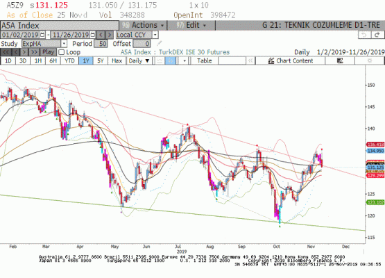Aralık vade endeks dün 131.125 seviyesinde günü negatif tamamladı.