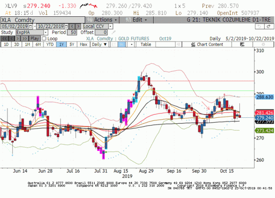 Gram Altın dün ters çekiş formasyonu bıraktığı bir mum formasyonu ile 285.80-279.14 aralığında hareket etti.