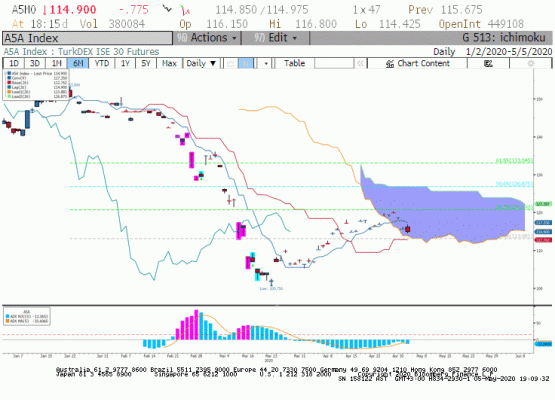 Haziran vadeli BIST30 endeksi küresel piyasalarda pozitif fiyatlamadan aldığı destek ile artı açılış yaptıktan sonra geriledi. Günün kapanışı 114.900 seviyesinde gerçekleşirken TL'in değer kaybının sürmesi endekte yükselişin önünü kesmiş görünüyor. Türkiye reel efektif kur Mart ayı gerçekleşmesi olan 72.87'den geri çekilme ile 68.88 olarak gerçekleşti. Son iki günde yaşanan geri çekilme ile toplamda beş işlem gününde TL'in Amerikan Doları karşısında yüzde 1.20 değer kaybettiği görülüyor. Morgan Stanley gelişen ülke hisse senedi endeksi 04 Mayıs düşüşü ardından toparlanma eğilimine girerken içeride vadeli endeksin zayıf performansı kurdaki negatif fiyatlamaya bağlanabilir.