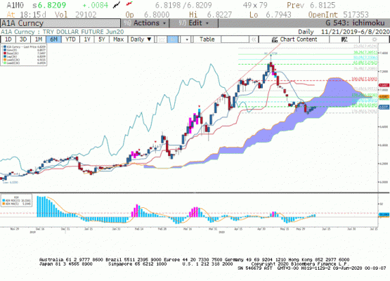 Teknik olarak, Haziran vadeli Dolar/TL paritesinde 6.8185 desteği altında 6.8045'e doğru geri çekime görebiliriz. Yukarıda 6.8260 ve 6.8340 direnç olarak görülüyor.