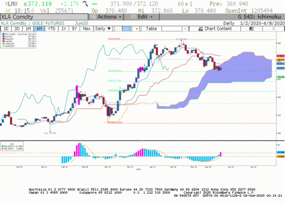 Ons altına baktığımızda haftanın son işlem gününde satışların yeniden ön plana çıktığını ve ons altının yeniden 1700$ altında kapanış yaptığını gözlemledik. Haziran vade gram altın ise günü 372.110 seviyesinden kapattı. Altının güvenli liman olarak cazibesi, daha fazla ekonominin yeniden açılması ve virüs eğrisinin yatay hale gelmesi ile birlikte azaldı. Genel olarak yükseliş trendinde olan onsta, kısa vade yakalanan momentum ile birlikte yaşanan gevşemenin ardından yeniden yükselişlerin yaşandığını görebiliriz.