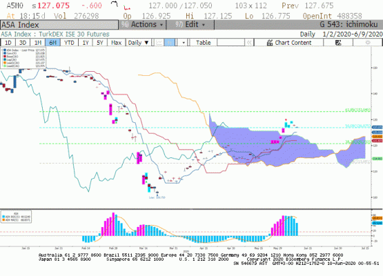 Teknik açıdan kontratta küresel piyasalardaki geri çekilmeye paralel gevşemenin gün içinde de devam edebileceğini ve günü kısmi satış baskısı ile açacağımızı düşünmekteyiz. Bu kapsamda ilk önümüze çıkan direnç seviyesi 127.675 olarak ön plana çıkmakta. Geri çekilmelerde ise 126.200 seviyesi ilk desteğimiz olarak ön plana çıkmakta.