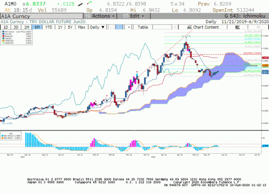 Teknik olarak, Haziran vadeli Dolar/TL paritesinde geri çekilmelerde 6.8285 desteği altında 6.8145 seviyesi ön plana çıkarken yükselişlerde 6.8385 ve 6.8450 direnç olarak görülüyor.