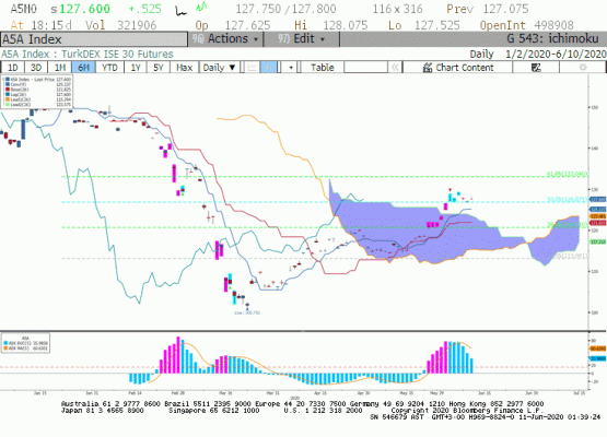Haziran Vade BIST 30 kontratında kontratın günü 127,600 seviyesinden pozitif kapattığını gördük. Dün akşam FED'den gelen açıklamalar sonrası ABD piyasaları bankacılık endeksindeki satışlar nedeni ile günü satıcılı kapatmış olsa da küresel piyasalarda bol likiditenin devam edecek olması, hisse piyasalarında yükselişleri destekleyecektir.