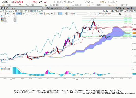 Teknik olarak, Haziran vadeli Dolar/TL kontratında geri çekilmelerde 6.8185 desteği altında 6.8145 seviyesi ön plana çıkarken yükselişlerde 6.8385 ve 6.8450 direnç olarak görülüyor.
