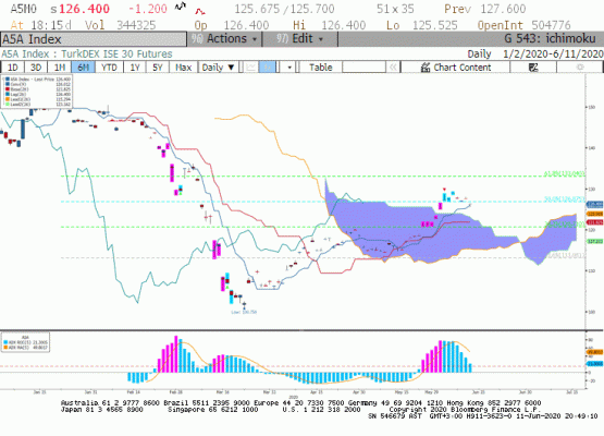 Haziran Vade BIST 30 kontratında kontratın günü 126,400 seviyesinden pozitif kapattığını gördük. FED'den gelen açıklamalar sonrası ABD piyasaları bankacılık endeksindeki satışlar nedeni ile günü satıcılı kapatmış olsa da küresel piyasalarda bol likiditenin devam edecek olması, hisse piyasalarında yükselişleri destekleyecektir. Ancak küresel piyasalardaki satışlar yurt içi fiyatlamaları da etkilemeye devam etmekte. ekonomilerin toparlanma sürecinin uzayabileceği ve salgında ikinci dalganın gelebilme ihtimali şu an için fiyatlamalarda satışların ön plana çıkmasında önemli rol oynamakta.