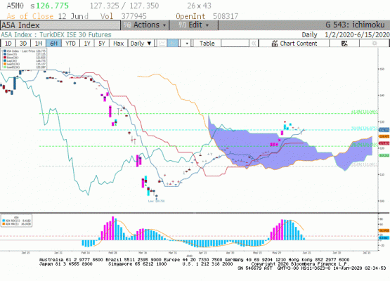 Haziran Vade BIST 30 kontratında kontratın günü 126,775 seviyesinden pozitif kapattığını gördük. Geçtiğimiz hafta piyasa fiyatlamalarında FED'den gelen açıklamalar ön plana çıkmış olup küresel piyasalar satış baskısı altında kalmıştı. Ancak yurt içi piyasaların bu küresel hareketten pozitif ayrıştığını gördük. Yurt içi yerleşiklerin hisse piyasalarına talebinin artması ve dolar bazında şirket değerlerinin hala ucuz olması hisse senedi piyasalarına olan talebi destekliyor.