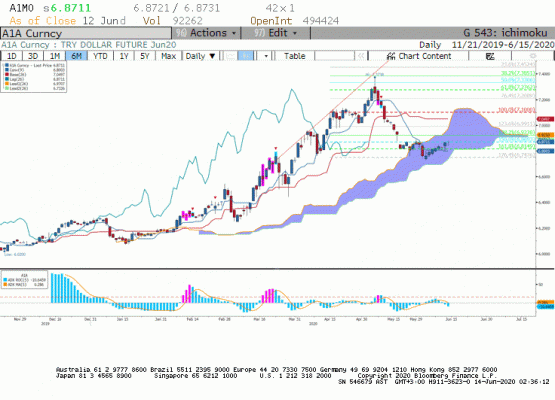 Son haftalarda Dolar'ın diğer para birimleri karşısında değer kaybına uğramasına rağmen USD/TRY paritesinde geri çekilmelerin sınırlı kaldığını görmüştük. Bu durumda hem yabancı çıkışlarının etkisi hem de kurumsal talebin hala devam ediyor olması etkili olmakla birlikte önümüzdeki günlerde paritenin yeniden 6,84 ile 6,78 bandında hareket ettiğini görebiliriz. Paritedeki yükselişe paralel Haziran Vadeli Dolar TL'de günü yükselişle 6,8711 seviyesinden kapattı.