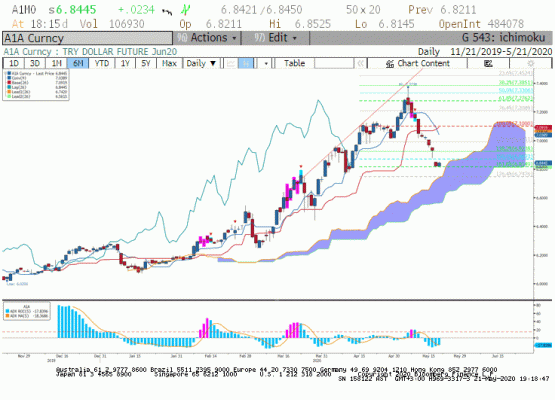 Ons/altın sert bir düşüş hareketi ile en düşük 1.717 doları gördü. Uzun vadeli tahvil faiz oranları düşük seyrini korurken DXY 99.50 endeks seviyesi altında iken bu sert düşüşün sebebini açıklamakta zorlanıyoruz. Ancak teknik olarak bakıldığında ichimoku grafikte trend çizgisi 1.712 dolar/ons seviyesinde ve bu seviye altında kısa vadede yükseliş beklemek anlamlı olmayacaktır. Dolar/TL paritesine gelince 6.8000 etrafında sakin bir gün geçirildi. Parite daha ziyade TCMB'den gelecek swap hamlelerine odaklanmış durumda diyebiliriz. Hafta içinde TL'in değer kazanımı ve ons altında düşüş bir araya gelinde 381.900 destek seviyesini aşağı yönde kıran gram altın tekrar bu seviye üzerine çıkmadığı müddetçe kısa vadeli satış baskısı sürüyor olacak.