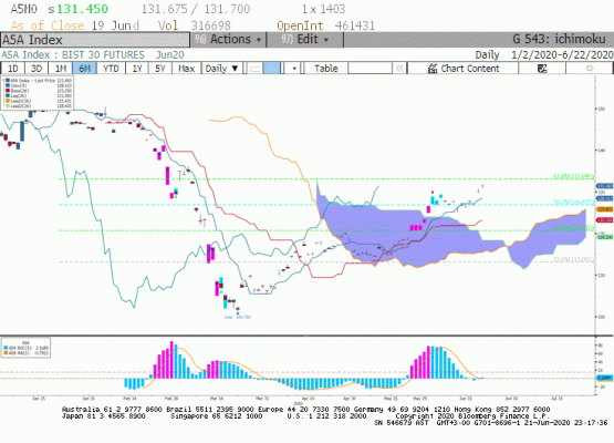 Haziran Vade BIST 30 kontratı günü endekse paralel yükselişle 131,540 seviyesinden ile kapattı. ABD'de endeksler, ABD ile Çin'de görülen yeni vakaların ve salgına ilişkin gelişmelerin etkisiyle günü karışık seyirle kapatırken, bugün kontratta da alımların ön plana çıktığını görebiliriz.