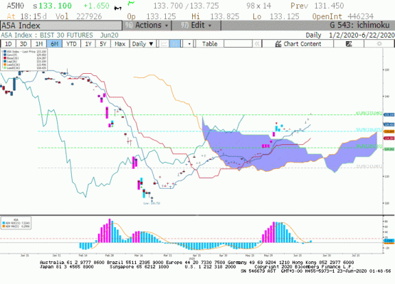 Haziran Vade BIST 30 kontratı günü endekse paralel yükselişle 133,100 seviyesinden ile kapattı. ABD'de endeksler, ABD ile Çin'de görülen yeni vakaların ve salgına ilişkin gelişmelerin etkisiyle günü karışık seyirle kapatırken, bugün kontratta da alımların ön plana çıktığını görebiliriz.