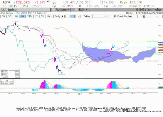 Haziran Vade BIST 30 kontratı günü endekse paralel düşüşle 132,525 seviyesinden kapattı. ABD'de endeksler, ABD ile Çin'de görülen yeni vakaların ve salgına ilişkin gelişmelerin etkisiyle günü sert düşüşle kapatırken, bugün kontratta da satışların ön plana çıktığını görebiliriz.