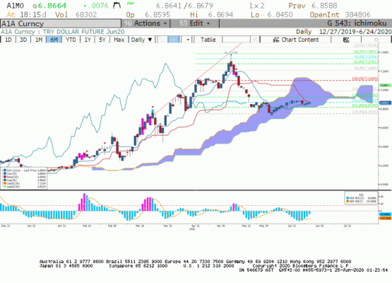 Parite gün içerisinde 6,85 seviyesinin üstünde destek bulurken Haziran Vadeli Dolar TL'de günü 6,8664 seviyesinden kapattı.