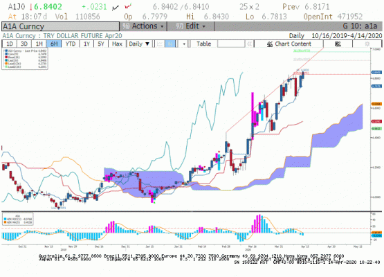 Dışarıda Dolar (DXY) endeksi 99.000 endeks seviyesine doğru geri çekildi. Gelişen ülke para birimlerinin son bir haftalık performansına bakıldığında TL 24 para birimi arasında 23. sırada yer alıyor. Önceki hafta daha iyi bir performans göstermiştik bu hafta gerideyiz. Türkiye 5 yıllık CDS primi 10 nisan tarihine kıyasla yükseliş ile tüm gün 560.00 etrafında işlem gördü. Londra swap piyasasında günlük yüzde 0.5 haftalık yüzde 9 olan faiz oranları yurtdışında TL sıkışıklığının olmadığını gösteriyor. Yurtdışı yatırımcının TL'de spekülatif işlem yapmadığı anlaşılıyor. Nisan vadeli Dolar/TL paritesinde yükseliş trendi sürüyor.