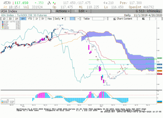 Teknik olarak, dün en yüksek 118.225 gören Nisan vadeli BIST30 endeksi bugün 117.750 üzerinde kalabilirse 122.000 seviyesi yeni hedef olabilir. Aşağıda 114.800 ve 113.500 destek olarak görülüyor.