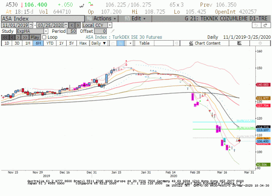 25 Mart seansında Nisan vadeli BIST30 endeksi 106.400 ile fazla bir değişim göstermedi. Amerika'da uzlaşma sağlanılması beklenen 2 trilyon dolarlık teşvik paketinde uzlaşma sağlandı. Buna rağmen Amerikan endekslerinde yükselişin sınırlı kalması ve günü içi 100 puanlık aralık içerisinde dalgalanmalar ile kararsız seyir bizdeki fiyatlamaya da yansımış görünüyor. Yatırımcı uzun pozisyonları ertesi güne taşımak konusunda temkinli görünüyor.