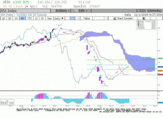 Nisan vadeli BIST30 endeksi haftayı 117.525 seviyesinde başladığı haftayı 115.825'te kapadı. Türkiye 5 yıllık CDS primi 604 seviyesinde iken TCMB'in 100 baz puanlık faiz indirimi ardından tahvil bono piyassaında faiz oranları geriledi. 2 yıllık tahvil faiz oranı bileşik yüzde 8.80 10 yıllık tahvil faiz oranı 11.84'te haftayı kapattı. Dolar/TL paritesi 6.95-7.00 TL arasında işlem görürken opsiyon piyasasında aylık öngörülen volatilite 20.50 seviyesinde geçtiğimiz haftaya kıyasla bir miktar geriledi. İçeride aktif rasyo hesaplama formülünde değişiklik yapılması ardından Fitch'in sektörün kredi görünümü zayıflayabilir uyarısı vardı. Bankacılık sektörü hisse senetlerinin özellikle 2021 yılı için bilançoda NLP rasyosu bozulabilir beklentisi ile yükselişe katkı sağlamadığı bir haftayı daha geride bıraktık.