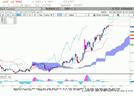 Teknik olarak, 7.000 TL üzerinde kalınırsa Nisan vadeli Dolar/TL paritesi 7.1500 direncini test edebilir. Aşagıda 6.9500 ara desteğinin altında 6.8500 seviyesi önemli destek olarak görülüyor.