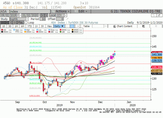 Şubat vade endeks dün ana trend yönünde fiyatlama hareketinde takip ettiğimiz 142.900 seviyesine yükseldikten sonra günü de 142.925 seviyesinde pozitif tamamladı.