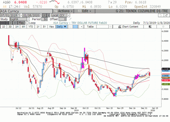 Bugün gelebilecek tepkisel alımlarda 5.99 (50 günlük ortalama) önemli bir direnç olarak takip edilmelidir. Trend aşağı yönlü gelişmekte ve 5.90 seviyesine doğru hareketin devam etme olasılığı bulunmaktadır.