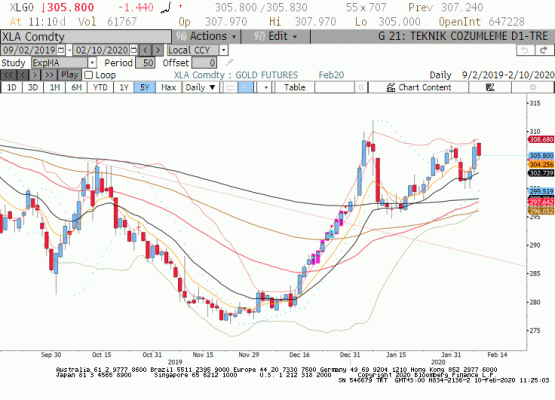 Teknik açıdan iz süren stop 303.50 üzerinde ana trend yukarı yönlü gelişmektedir. Bu seviye kırılmadığı sürece geri çekilmelerde alımların artabileceğini düşünüyoruz.