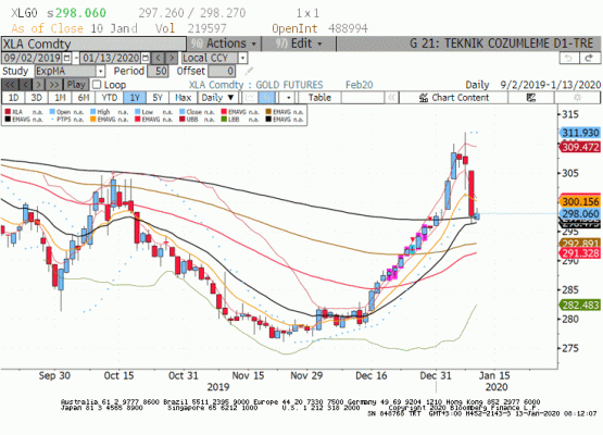 Gram altın fiyatı bugün için iz süren stop seviyesi 298.30 lira altında devam eden seyirde kısa vade için geçerli düşüş eğilimini koruyor. 294.60 lira seviyesi bugün için önemli destek olarak takip edilmelidir. 293-291 lira detsek bölgesini ise alıcıların kuvvetli biçimde artmasını beklediğimiz destekler olarak takip ediyoruz. Güvenli liman talebini artıracak herhangi bir sebeple 298.30 üzerinde tutunma sağlanırsa tekrar yukarı yönlü bir trend oluşumu görülebilir.