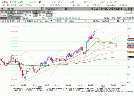Dün 139.475 seviyesinde negatif kapanış yapan endekste hem yurt dışı borsalardaki satışlar hem de içeride İdlib ile ilgili jeopolitik endişeler etkili olmaya devam ediyor. Bugün görülebilecek yukarı yönlü hareketler tepkisel değerlendirilmelidir. Aşağı yönlü hareketin kısa vadede devam edebileceğini düşünüyoruz.