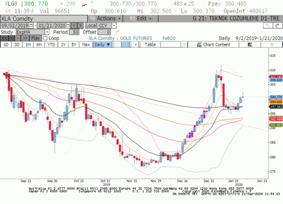 Dün Çin kaynaklı endişelerin Altın ons fiyatını yukarı çekmesi Gram Altının beklediğimiz 302.15 seviyesini test etmesini sağlarken, bugün endişelerin azalması ile güvenli liman talebinde düşüş gram altın fiyatında gerilemeye yol açacaktır. Dünün en düşük seviyesi 298.00 lira bugün de destek olarak çalışabilir. 298.00 lira altında kalıcılık sağlanmadığı sürece kısa vadeli periyotlarda eğilimin yukarı yönlü olduğuna dikkat edilmelidir.