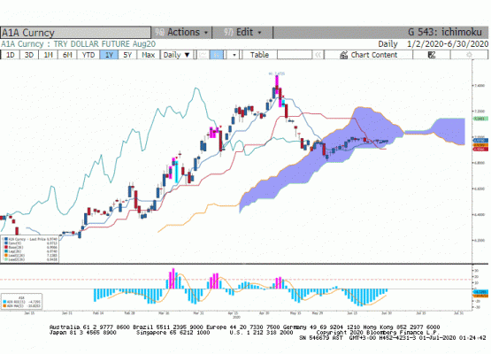 USD/TRY paritesi hafta başından beri 6.85 civarında yatay seyrederken Temmuz Vadeli Dolar TL'de günü 6,9740 seviyesinden yükselişle kapattı. ABD'den gelen veriler ekonomiye dair toparlanma sinyali veriyor olsa da pandemide ikinci dalga endişeleri hala piyasalarda baskı yaratmaya devam ediyor.
