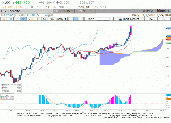 Altın fiyatları, koronavirüs vaka sayısındaki sert yükselişten dolayı artan güvenli liman alımları, yavaşlayan büyüme, zayıflayan dolar ve ABD'de negatif faizler nedeniyle yükselişine devam ediyor. Hükümetler ve merkez bankalarından gelen yüklü miktardaki teşvikler de bu yükselişi destekliyor. Geçtiğimiz gün 1981$ seviyesine kadar yükselen ons akşam saatlerinde gördüğü satış baskısı sonrası 1918$ seviyesine kadar geriledi. Ancak kar realizasyonlarına rağmen küresel koşullar ve artan talep nedeni ile trendin hala yukarı yönlü olduğunu söyleyebiliriz. Ağustos Vade Gram Altın ise geçtiğimiz günü 442,760 seviyesinden tamamladı. Kar realizasyonlarına rağmen küresel koşullar ve artan talep nedeni ile trendin hala yukarı yönlü olduğunu söyleyebiliriz.
