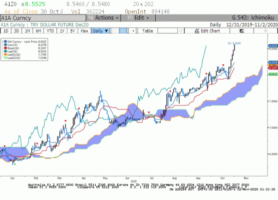 Aralık Vadeli Dolar TL geçtiğimiz günü 8,4977 seviyesinden kapattı. ABD seçim sonuçları öncesi dolar gelişmiş para birimleri karşısında gerileme gösterirken dolar/TL de gün içinde gevşedi. Gün içinde Biden'ın kazanma ihtimalinin artması dolar endeksinde gerilemeye yol açarken paritede gevsemenin nedeni de bu oldu. Diğer yandan Fed, beklentilere paralel olarak federal fonlama faizinde değişikliğe gitmedi. Toplantı sonrasında açıklamalarda bulunan Fed Başkanı Powell, son zamanlardaki koronavirüs vakalarındaki artışın endişe verici olduğunu belirtti.