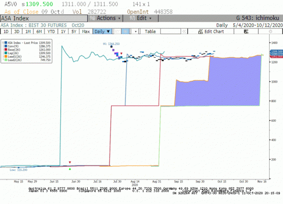 Ekim Vade BIST 30 kontratı geçtiğimiz günü 1311,00 seviyesinden kapattı. Hafta içerisinde küresel piyasalara paralel sınırlı alımların ön plana çıktığını gördüğümüz endekste cuma günü USDTRY' de yükselişin momentum kazanması ile birlikte banka hisselerinde yaşanan satışların da etkisi ile günü sınırlı alım ile kapadık. Geçtiğimiz hafta, önceki haftalara göre nette alımda olan yabancı yatırımcı hafta ortası itibari ile hisse bazlı satışlar gerçekleştirdi. Satışların artmasının TL varlıklar üzerindeki riskler ve artan jeopolitik endişelerden kaynaklı olduğunu düşünmekle birlikte endekste gün içerisinde 1150 seviyesi yeniden önemli olacak.
