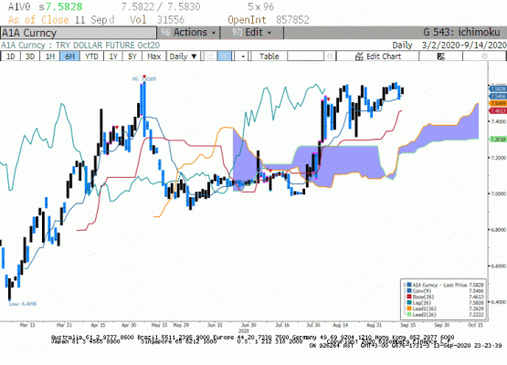 Teknik olarak yükseliş eğiliminin ön planda olduğunu gördüğümüz Eylül vadeli Dolar/TL kontratında geri çekilmelerde 7,4485 desteği altında 7,4270 seviyesi ön plana çıkarken yükselişlerde 7,5350 ve 7,5520 direnç olarak görülüyor.