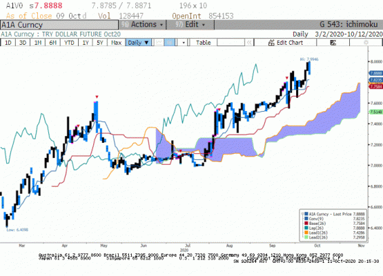 Ekim Vadeli Dolar TL geçtiğimiz günü 7,9417 seviyesinden kapattı. Hafta ortası Cumhurbaşkanı Erdoğan'ın doğalgaz rezervleri ile ilgili müjdeli haber vereceği yönünde açıklamaları TL varlıkların değer kazanmasına yol açarken geçtiğimiz gün de kurda gerilemenin devam ettiğini gördük. Diğer yandan akşam saatlerinde DXY'de akşam saatlerinde teşvik paketleri ile ilgili belirsizliğin de etkisi ile geri çekilmenin ön plana çıktığını gördük.