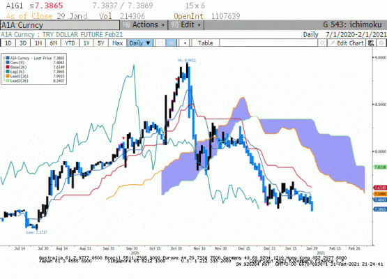 Yakın Vadeli Dolar TL geçtiğimiz günü 7,2600 seviyesinden kapattı. Paritede 200 günlük hareketli ortalamanın kırılması ile hızlanan satışlar, TL'nin diğer gelişmekte olan ülke para birimlerinden pozitif ayrışmasına neden oldu. Özellikle TCMB'nin enflasyon ile mücadele konusundaki tutumu , Kasım ayından bu yana TLye değer kazandırıyor. Bugün enflasyon rakamını takip edeceğiz. Geçtiğimiz ay 14,60 açıklanan enflasyonda bu ay ortalama piyasa beklentisi 14,68 seviyesinde.
