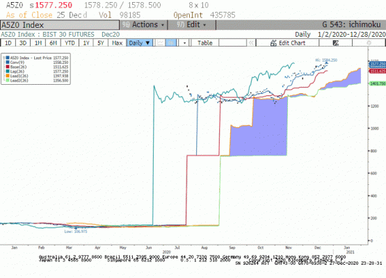 Yakın Vade BIST 30 kontratı geçtiğimiz günü 1653,75 seviyesinden kapattı. Hafta genelinde küresel piyasalara paralel yükselişin ön plana çıktığını gördüğümüz endekste , Perşembe günü gelen para banka istatistikleri yabancıları geçtiğimiz hafta nette satıcılı olduğunu gösterirken işlem hacminin de yıl başı olması nedeni ile düşük seyrettiğini gördük.