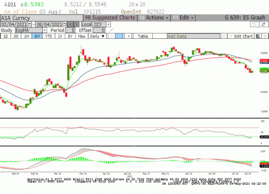 Geçtiğimiz işlem gününü oldukça hareketli geçiren Ağustos Vadeli Dolar/TL paritesi 8.42 seviyelerine kadar düşmesine rağmen bu seviyelerden tepki alımlarıyla karşılaştı ve günü 8.53 seviyesinin hemen üzerinden tamamladı.