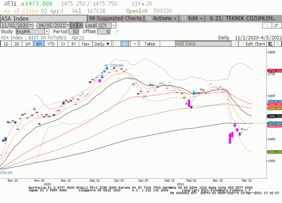 Nisan vadeli BIST30 endeksi geçtiğimiz haftanın son iki işlem gününde yaşanan yükseliş ile 1473 endeks seviyesine kapanış yaptı. Veri ekranlarına düşen haber akışına göre hükümet kurumlar versisi oranını 2021'de %25'e çekmek için hazırlanıyor. Kurumsal vergi oranının 2023 senesi için ise %23 olarak planlandığı beklentisi var. Hisse senedi piyasasını yakından ilgilendirecek bu gelişme piyasada önümüzdeki iki yılın karlılık baklentilerinin değişmesi anlamına geliyor. Öte yanda sınai sektörü içinde hisse bazında pozitif etki yaratan haber akışı ile pozitif olmakla beraber piyasanın moralini düzeltecek olan bankacılık sektöründe ki toparlanma olacaktır. Son beş işlem gününde sınai sektörü 132 puan hizmetler 30 bankacılık 26 puan yükseliş kaydetti. Bugün ve haftanın geri kalanında BIST100 endeksinin küresel risk alma eğilimine iştirak etmesi Ankara'dan gelmesi muhtemel haber akışına ve bankacılık sektörü performasnına bağlı diyebilriz.