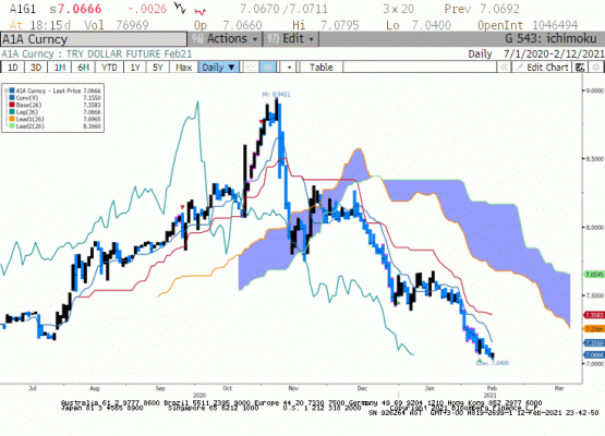 Yakın Vadeli Dolar TL geçtiğimiz günü 7,0154 seviyesinden kapattı. Hafta ortasında Bullard'ın enflasyonda 2021 yılı içinde yükseliş bekledikleri yönündeki açıklamaları sonrası ABD tahvil faizlerinde yaşanan yükseliş sonrası DXY'de yaşanan tepkinin kalıcı olmadığını gözlemledik. Özellikle FED'in varlık alımlarına devam edecekleri yönündeki açıklamaları DXY'de yükselişin sınırlı kalmasını sağladı. Ancak sınırlı yükselişe rağmen Dolar gelişmekte olan para birimleri karşısındaki değer kazancını korudu. Bugün TCMB faiz kararını takip ediyor olacağız. Faiz oranlarında değişiklik beklememek ile birlikte gün içinde volatilitenin yüksek olabileceğini düşünüyoruz. Bunun yanında kısa vadede 6,80 beklentimizi koruyoruz.