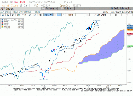 Yakın Vade BIST 30 kontratı geçtiğimiz günü 1707,25 seviyesinden kapattı. Endekste ana trend korunmakla birlikte kısa periyotta sınırlı düzeltme eğilimi ön plana çıkabilir. Gün içinde küresel piyasalarda ABD görev teslimi ve Biden'dan gelecek açıklamalar piyasalarda risk iştahının devamı açısından önemli olmaya devam edecek.