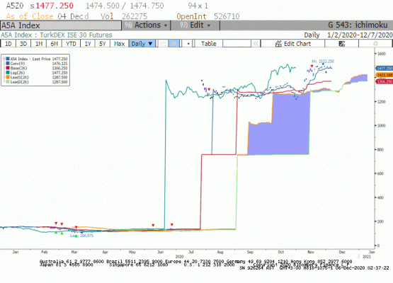 Yakın Vade BIST 30 kontratı geçtiğimiz günü 1569,50 seviyesinden kapattı. Bugün para ve kur politikası sunumu ve ardından Naci Ağbal'ın yapacağı açıklamalar TL varlıklar açısından önemli olacak. Kasım ayı itibari ile normalleşme yolunda atılan adımların etkisi ile yurt içi piyasalara yabancı talebinin arttığını gözlemlemiştik. 24 aralık PPK öncesi gelecek söylemler ve enflasyon ile mücadele konusundaki kararlılığın yarın ki sunumda ön plana çıkması TL varlıklara olan güveni artıracaktır. Dolayısı ile bu beklentilerin karşılanması halinde endekste yeni zirveler görmeye devam edebileceğimizi düşünüyoruz.