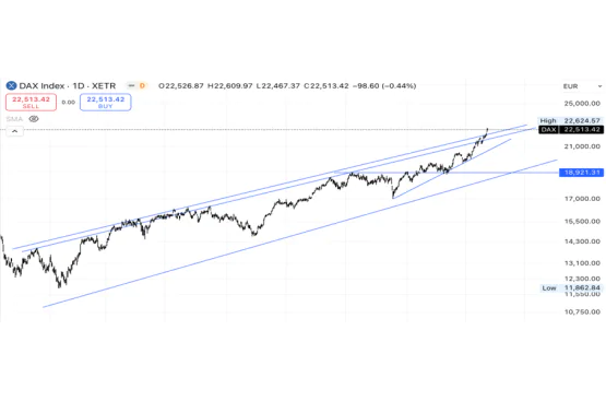 Dow Jones Industrials Endeksi haftayı tarihi zirvelere yakın bir noktada tamamlarken, 39.281 zirvesinin aşılması halinde psikolojik açıdan da önemli olan 40 bin düzeyi hedef olarak izlenecektir. kısa vadeli ortalamaların geçtiği 39.000 ilk planda destek, aylık ortalamaların geçtiği 38.700'ler ise sonraki kuvvetli destek olarak izlenmeli.